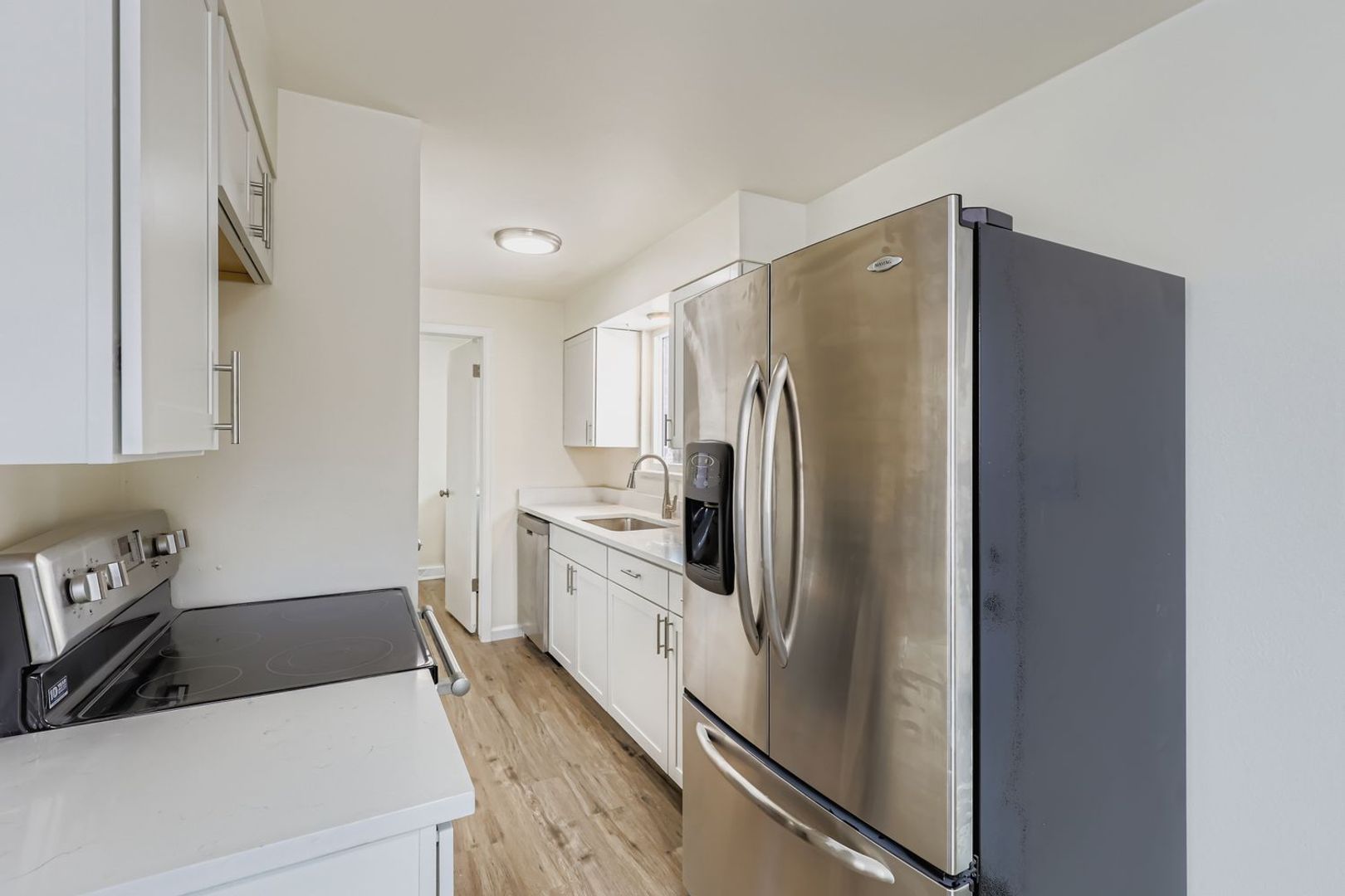 Esta casa adosada de dos dormitorios y un baño y medio ha sido bellamente renovada con una distribución bastante abierta, pisos de vinilo nuevos, gabinetes estilo shaker con encimera de mármol y electrodomésticos de acero inoxidable nuevos. Cuenta con un garaje para un coche y espacio de estacionamiento adicional, un amplio patio trasero privado y un jardín delantero compartido, además de lavadora y secadora.
