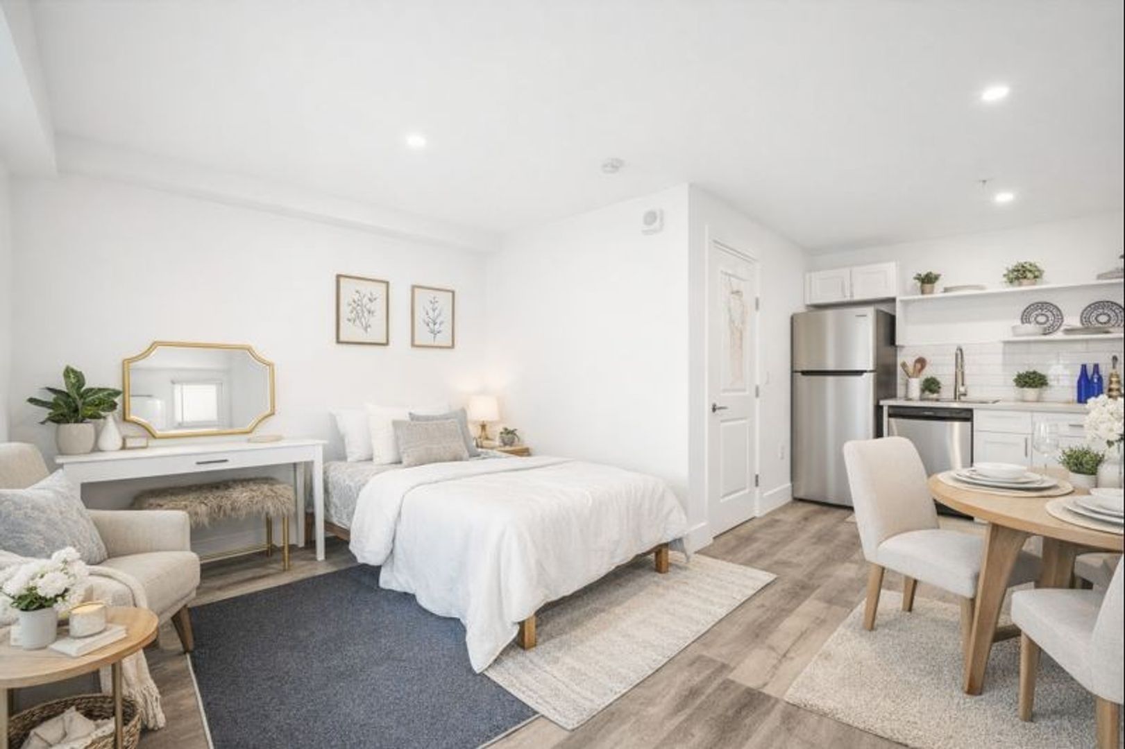 Stylish vinyl plank flooring throughout