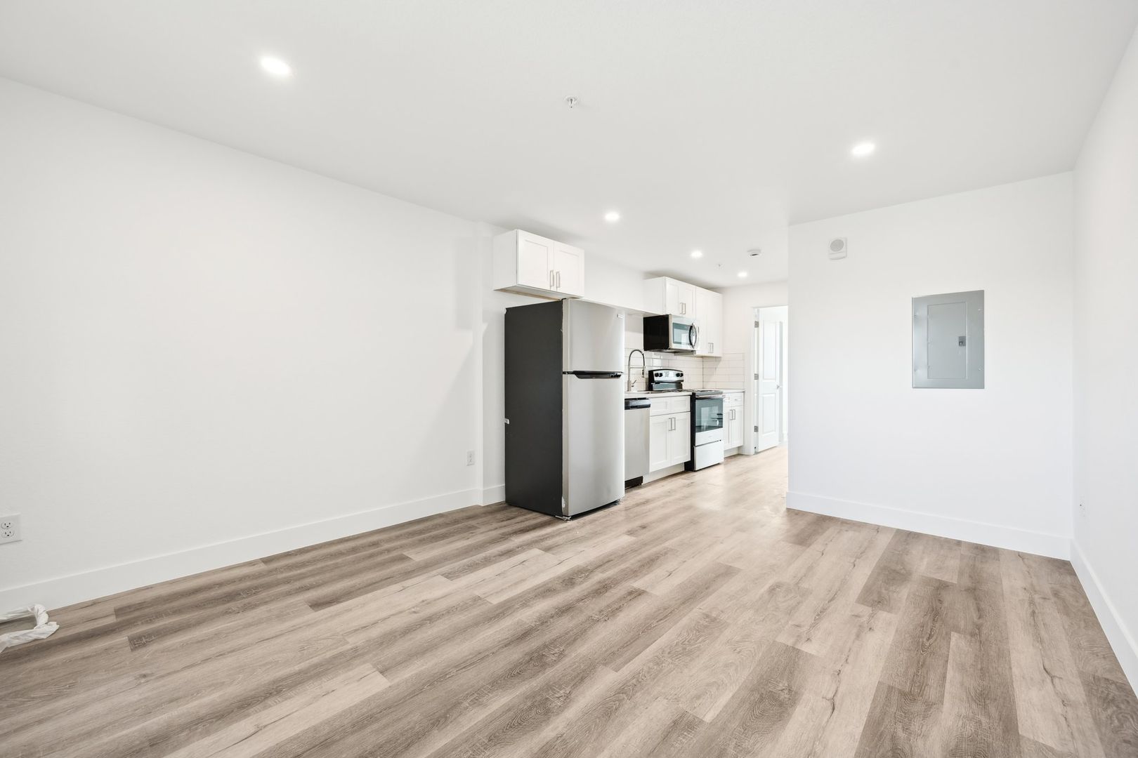 Stylish vinyl plank flooring throughout